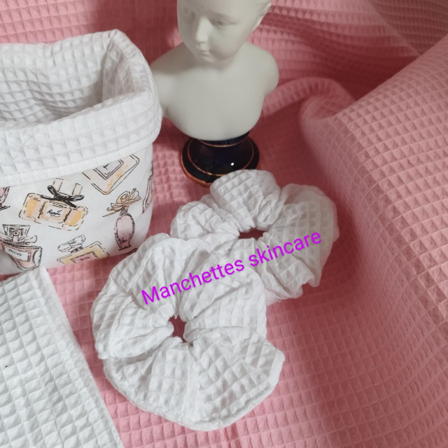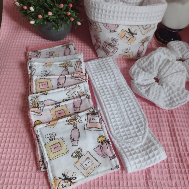 Réalisez en éponge nid abeille Elle se compose d'un bandeau de soins ainsi que les lingettes lavables démaquillants l, des manchettes skincare à mettre à vos bras afin d'éviter que l'eau coule .