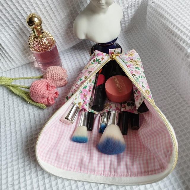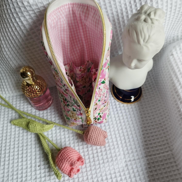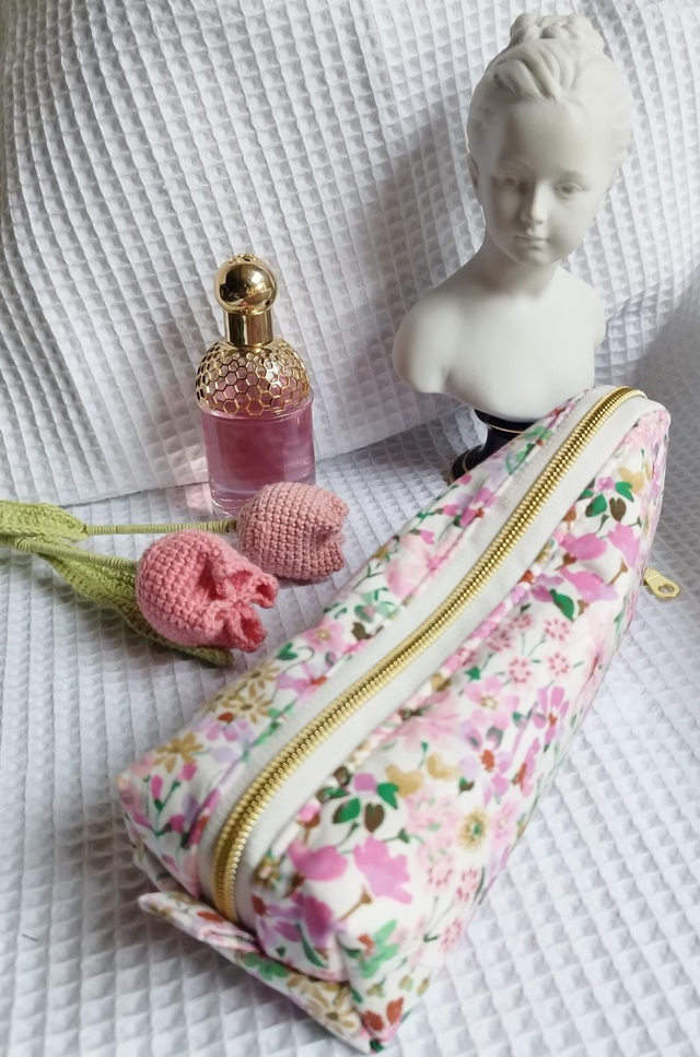 Églantine la trousse de maquillage passe partout, elle pourra être mise dans votre sac au quotidien, ou dans vos bagages.