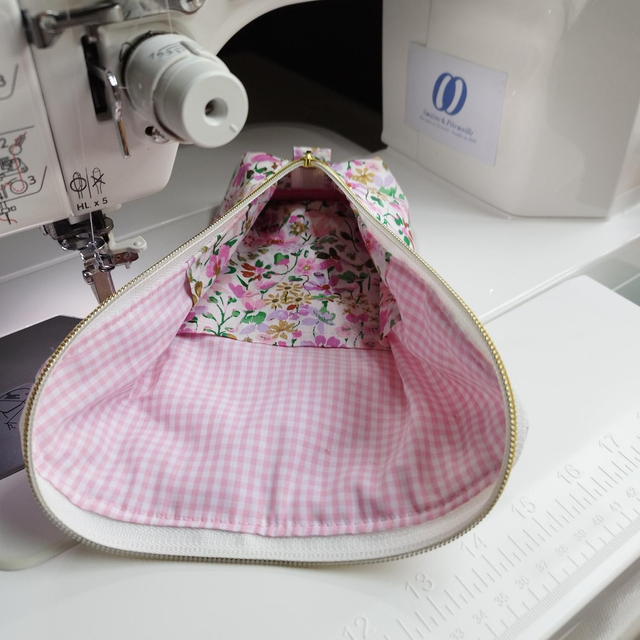 En tissu de coton Eglantine et doublé de tissus vichy rose.