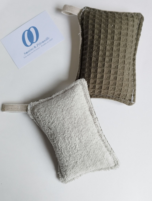 • Éponge lavable en éponge coton nid abeille et lin recycles très douces surtout pour les vitrocéramique es poêles Tefal .