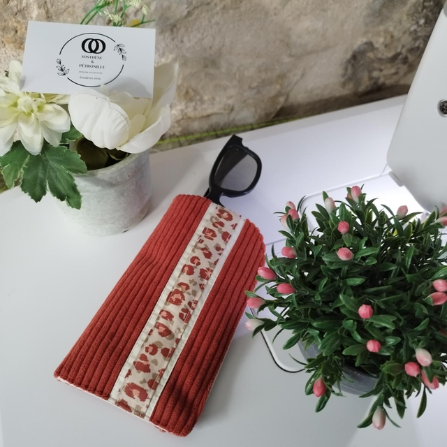 Étuis à lunettes collection signature en velours côtelé épais et avec sa bande décorative signature graou assortis a la doublure.