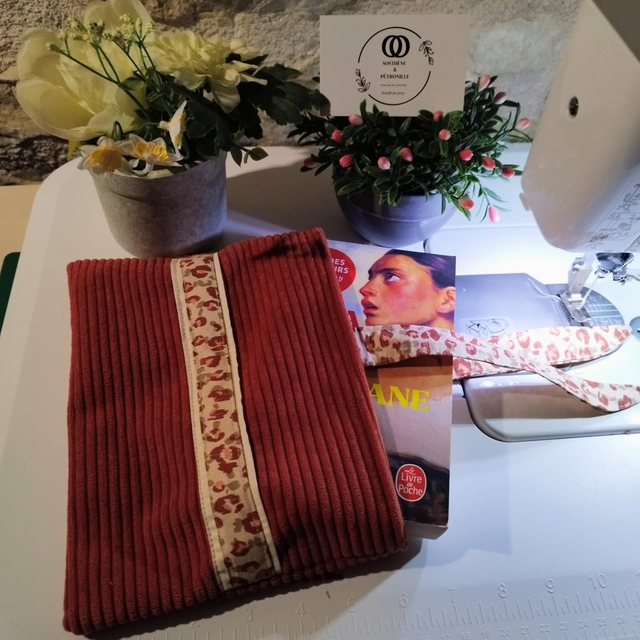 Emporter partout votre livre, avec la housse de collection signature en velours côtelé terracotta.